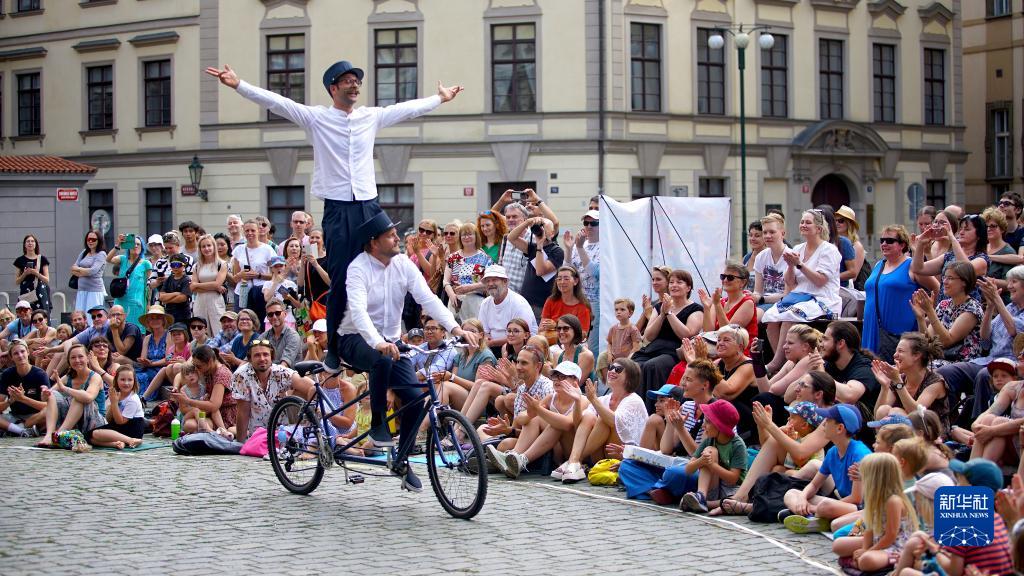 7月14日,藝術工作者在捷克首都布拉格街頭戲劇節上表演。