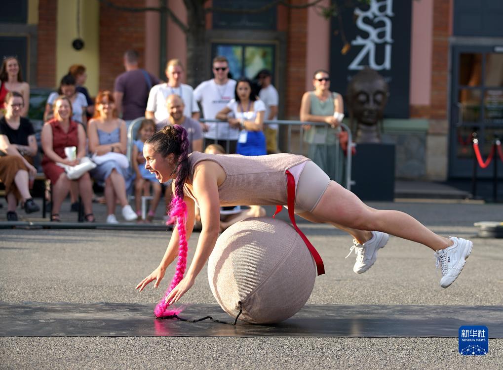 7月14日,藝術工作者在捷克首都布拉格街頭戲劇節上表演。