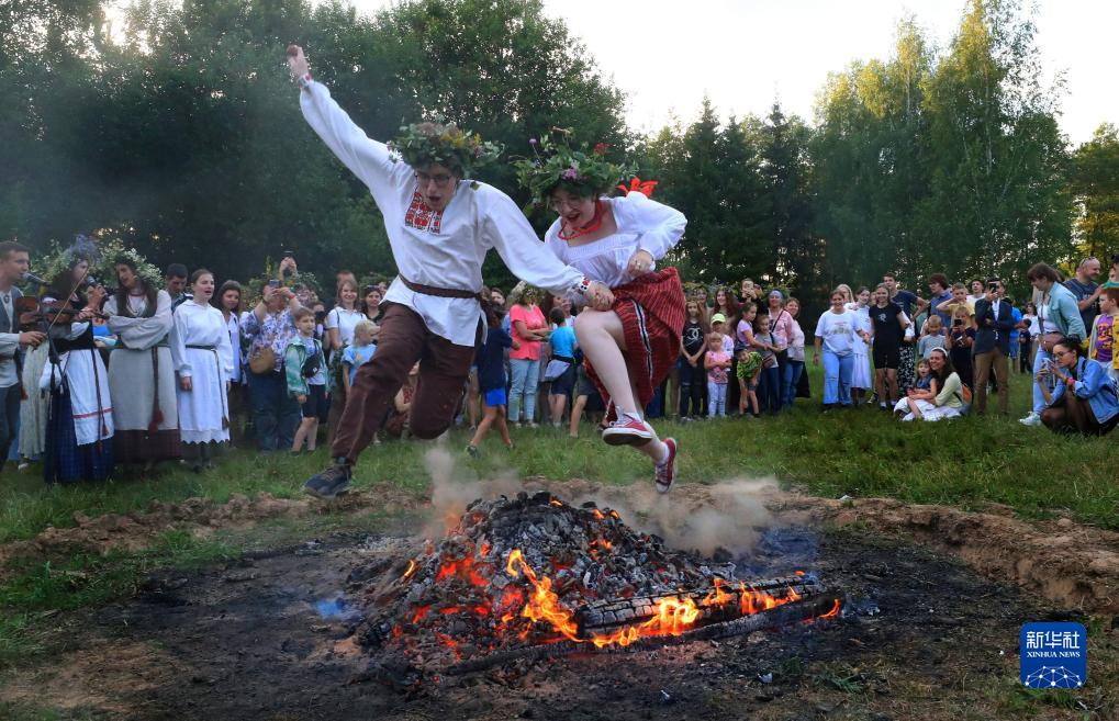 7月8日,人們在白俄羅斯明斯克州參加伊萬·庫帕拉節慶?;顒?。