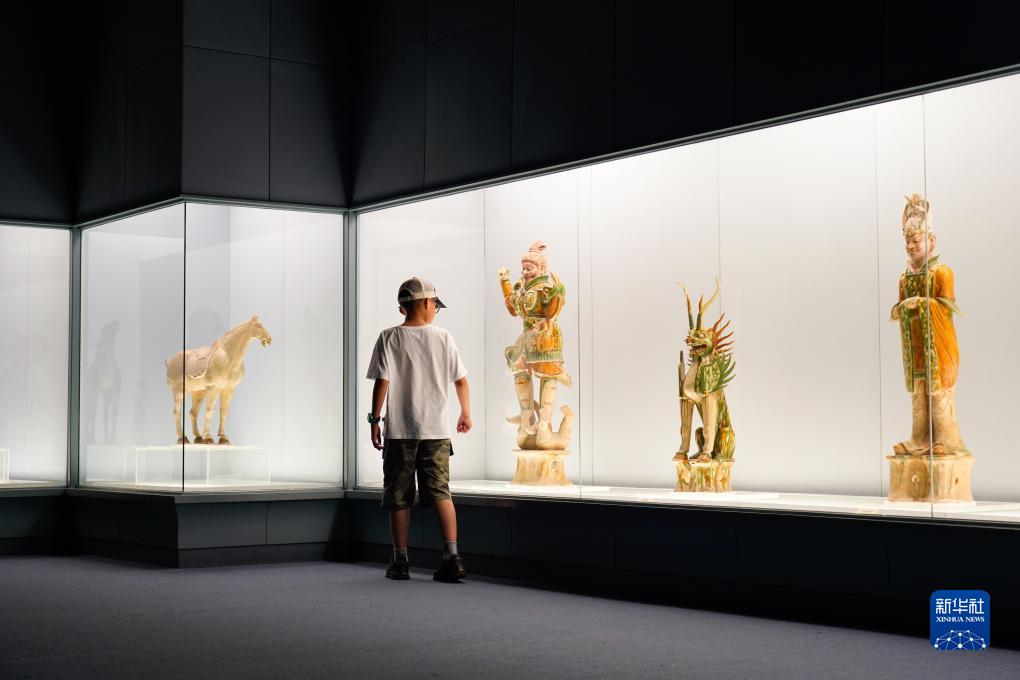 7月14日晚,小朋友在上海博物館的中國古代陶瓷館觀看展品。
