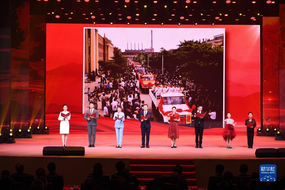 7月15日,一汽員工在中國一汽成立70周年慶祝大會上表演詩朗誦。