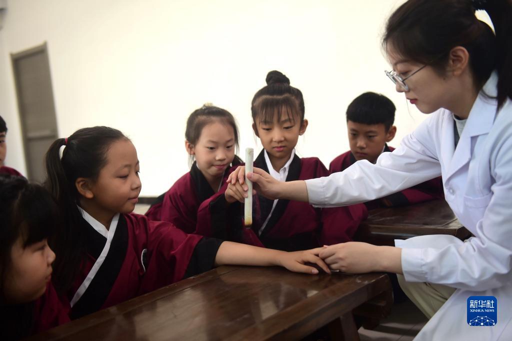 暑假期間,河北省滄州市鹽山縣衛健局為小學生舉辦中醫藥文化主題夏令營。當地中醫院的中醫走進夏令營,以實景課堂、治療演示、野外采藥等方式,讓孩子們體驗中醫藥傳統文化特色,深入了解中醫藥。