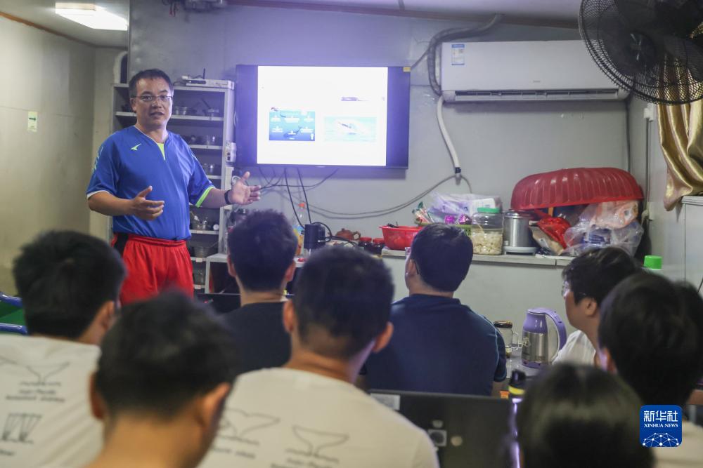 7月3日,第六次南海深潛及遠海鯨類科考航次的科研人員在船上討論交流。