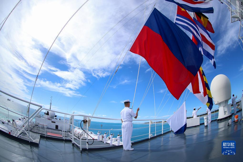 7月15日,中國海軍“和平方舟”號醫院船懸掛滿旗抵達基里巴斯塔拉瓦。
