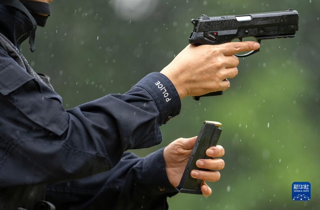 7月13日,尹銘燕在射擊訓練前準備。
