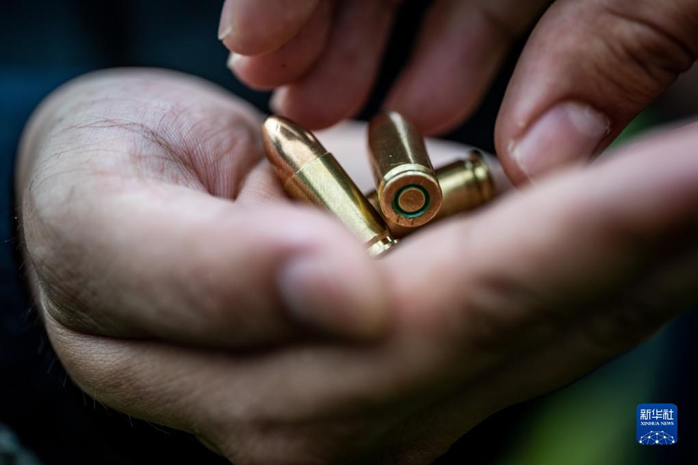 7月13日,尹銘燕在射擊訓練開始前領取子彈。