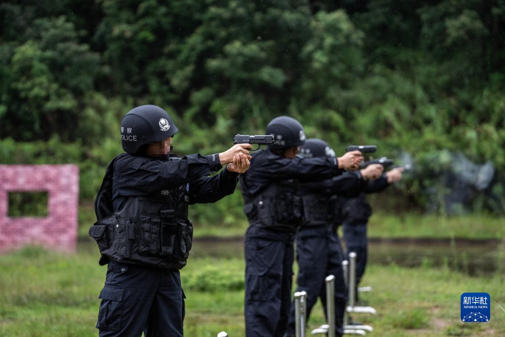 7月13日,尹銘燕(左一)和戰友在進行射擊訓練。