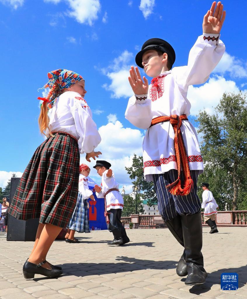當日,一場民族舞蹈比賽在白俄羅斯維捷布斯克舉行。新華社發(任科夫攝)