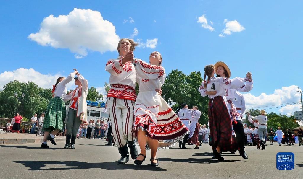 當日,一場民族舞蹈比賽在白俄羅斯維捷布斯克舉行。新華社發(任科夫攝)