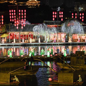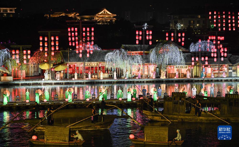 7月14日,演員在開封清明上河園景區內演繹大型水上實景演出《大宋·東京夢華》。