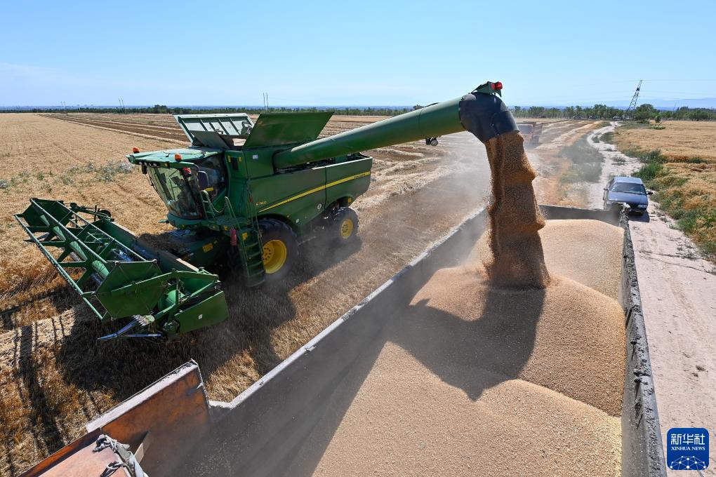 入伏以來,新疆夏糧收獲進入關鍵期,為確保夏糧顆粒歸倉,新疆積極組織協調人力物力搶收糧,迎豐收。