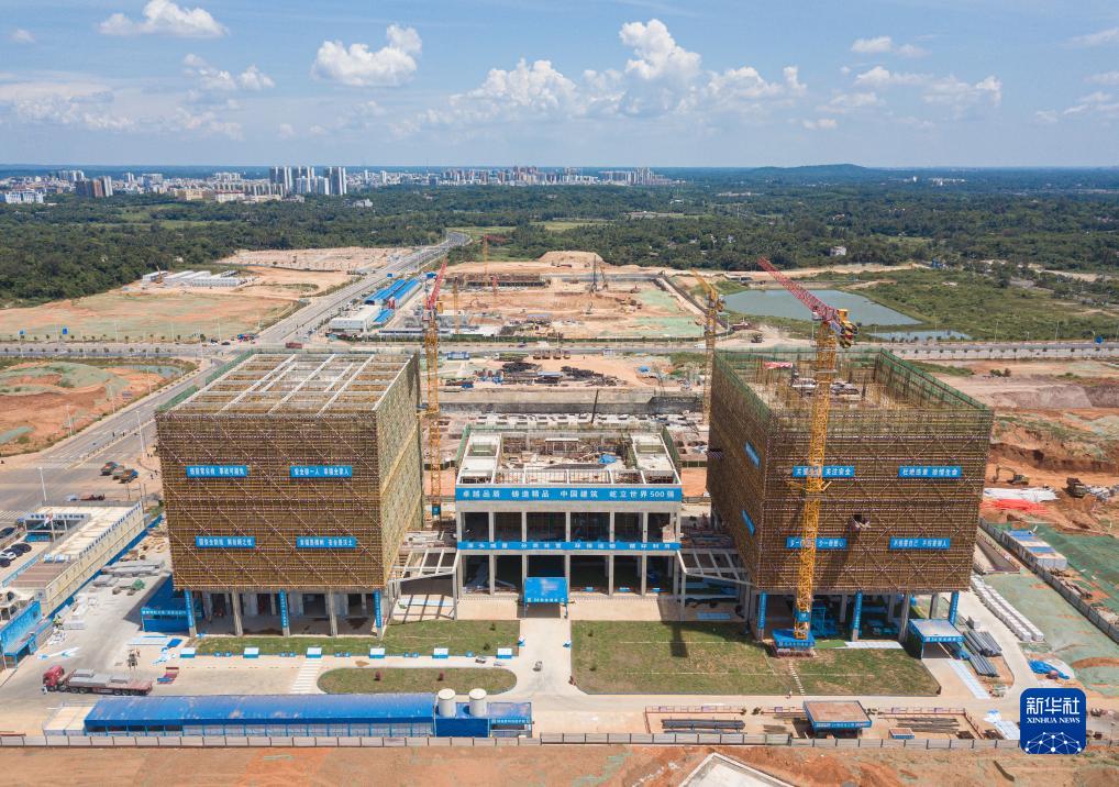 7月15日在海南文昌國際航天城拍攝的建設中的遙感衛星項目(無人機照片)。