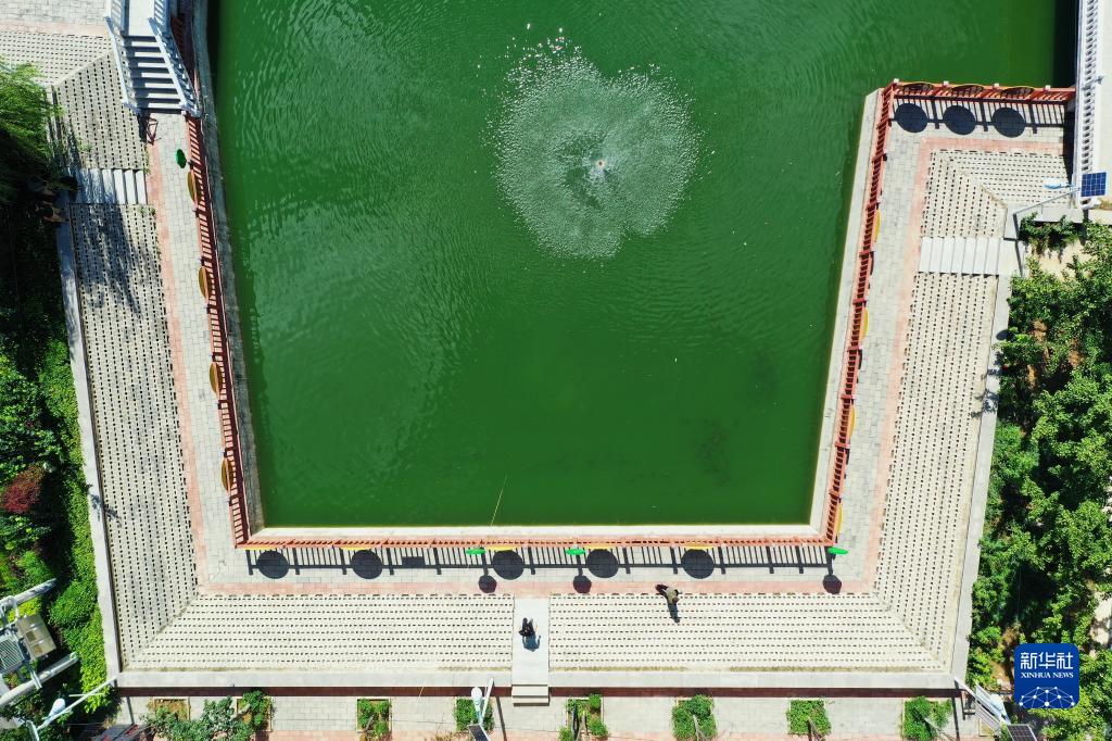 河北省涿州市東仙坡鎮西仙坡村由垃圾坑塘經過治理建成的游園(7月16日攝,無人機照片)。
