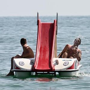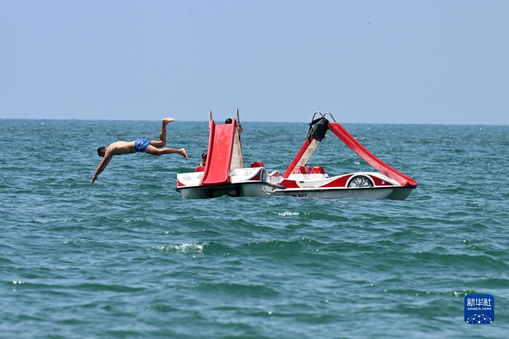 7月16日,在意大利拉迪斯波利,人們在海中嬉戲。