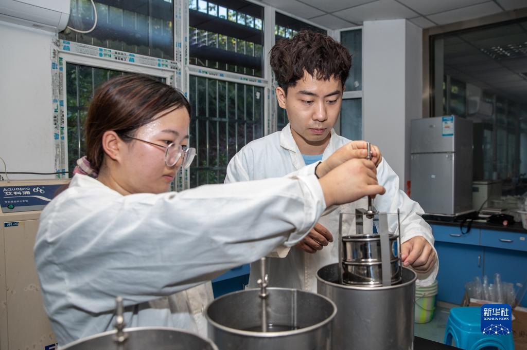 在中國科學院三峽庫區水土保持與環境研究站,中國科學院成都山地所的科研人員在物理實驗室內進行土壤水穩性團聚體測定(7月5日攝)。