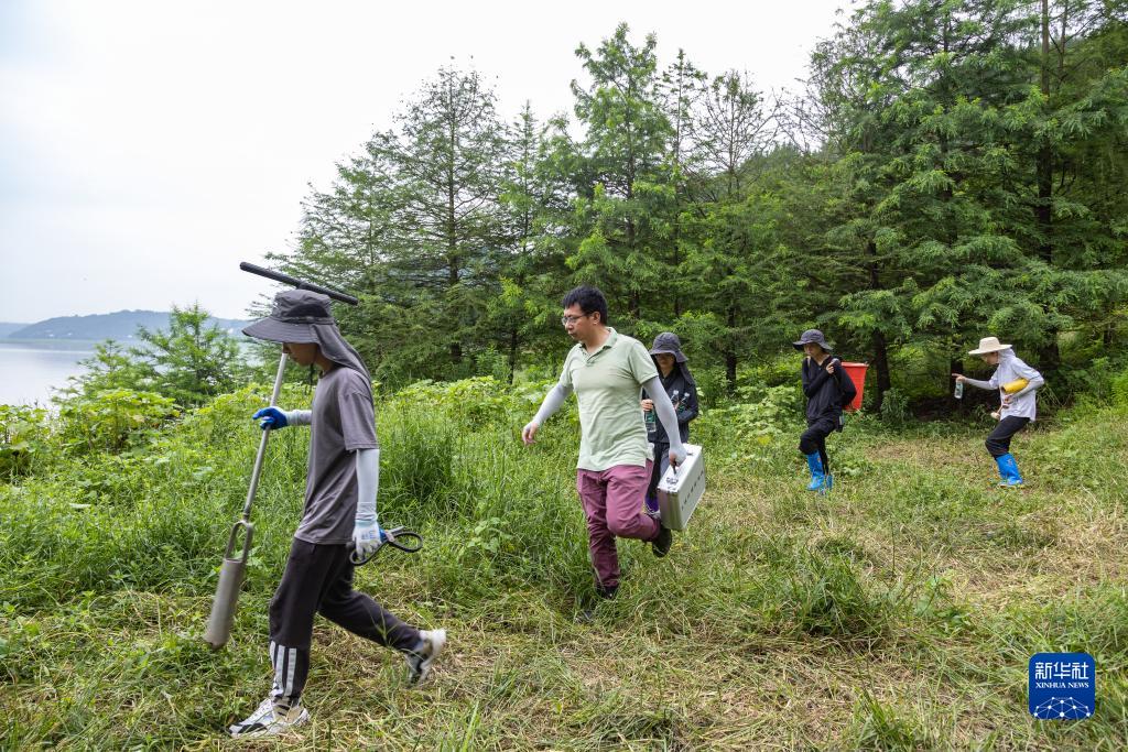 在重慶市忠縣,中國科學院成都山地所的科研人員前往三峽水庫消落帶,準備開展相關監測(7月6日攝)。