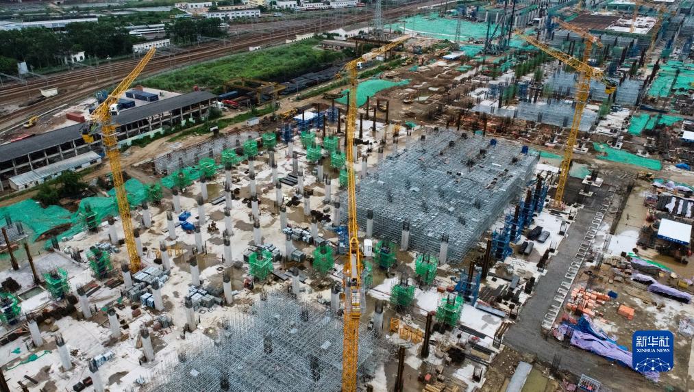 7月17日,??谛潞8酆湍细邸岸€口岸”(貨運)集中查驗場所建設項目停止建設(無人機照片)。