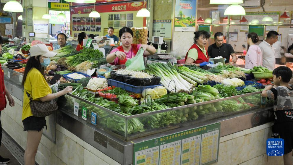 7月17日,在??谑薪鹳Q文華農貿市場,市民有序選購蔬菜。