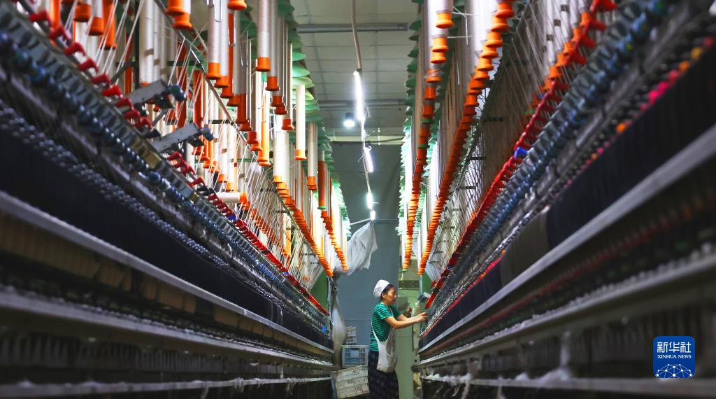 7月17日,在江蘇省連云港市海州區一家紡織企業,工人在生產線上忙碌。