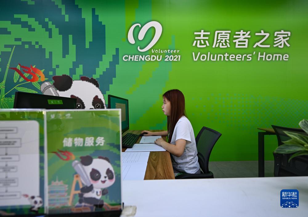 7月15日,在大運村志愿者之家,一位志愿者正在工作。