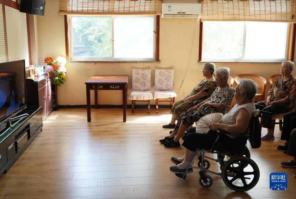 7月17日,在正定縣塔元莊村勁松老年公寓,老人在活動室看電視。