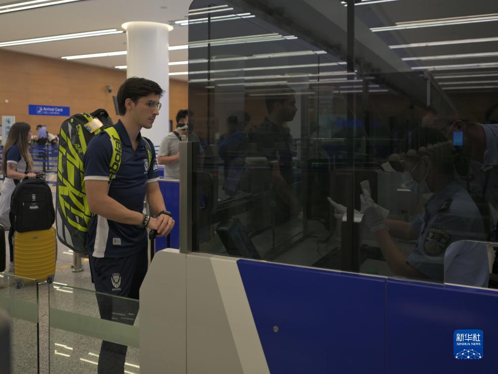 7月17日,在成都天府國際機場,巴西代表團成員等待過關。
