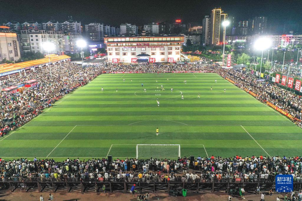 7月15日,人們在觀看貴州“村超”足球賽(無人機照片)。