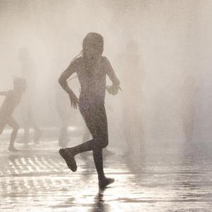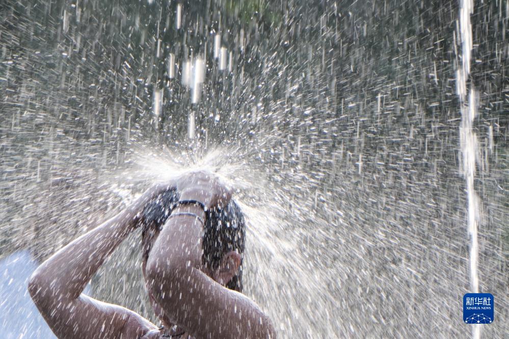 7月17日,一名女子在西班牙馬德里的噴泉中解暑。