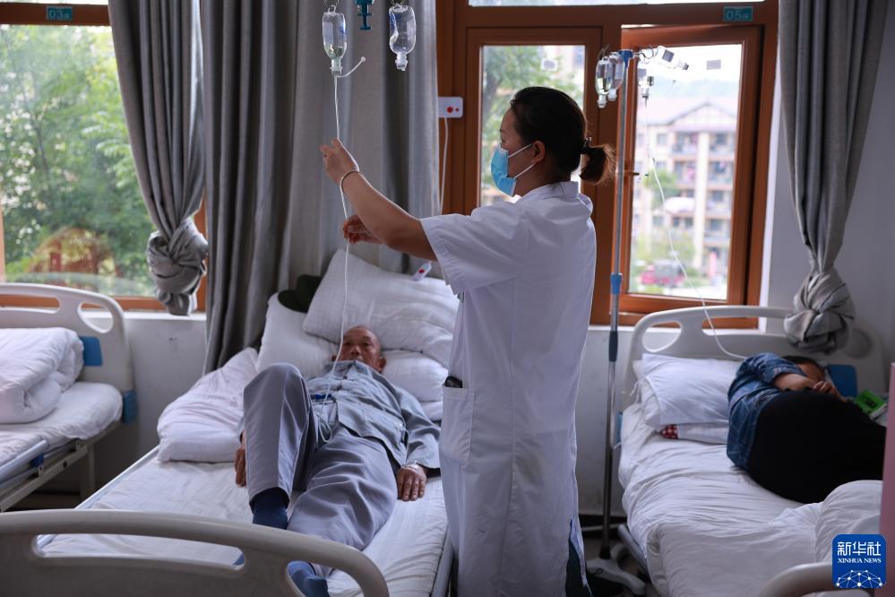 柏楊林街道社區衛生服務中心,醫護人員為患者治療(7月13日攝)。