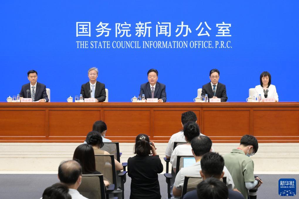 7月18日,國務院新聞辦公室在北京舉行新聞發布會,請國家知識產權局副局長胡文輝、戰略規劃司司長葛樹、知識產權保護司司長張志成、知識產權運用促進司司長雷筱云介紹2023年上半年知識產權工作有關情況,并答記者問。新華社記者 李賀 攝