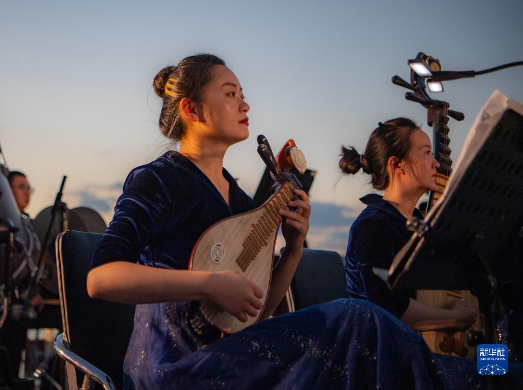 昆明市民族歌舞劇院民樂團的演奏家在開幕式現場演奏(7月17日攝)。