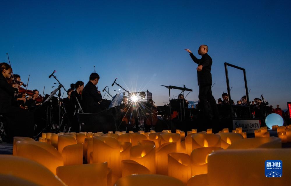來自昆明聶耳交響樂團及昆明市民族歌舞劇院民樂團的演奏家們在昆明市滇池畔共同演奏包括《義勇軍進行曲》《賣報歌》在內的聶耳代表作(7月17日攝)。