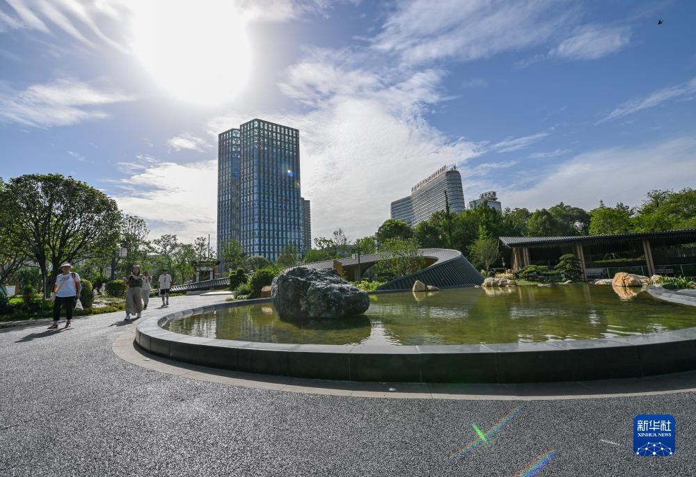 7月14日,游客在成都市青羊區文化公園內散步。