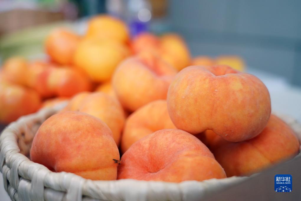 7月18日在2023北京·平谷鮮桃季“土特產”市集現場拍攝的桃子。