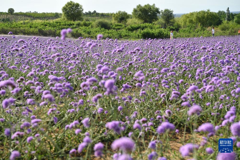寧夏薰衣草莊園盛開的馬鞭草(7月15日攝)。