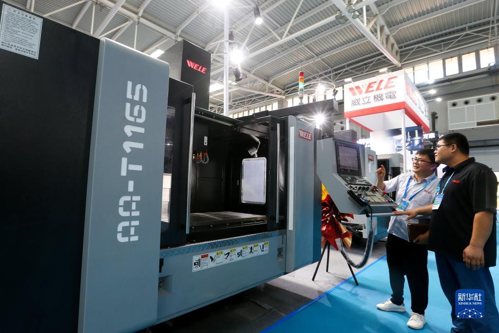 7月18日,參展商在2023青島國際機床展覽會上調試銑削設備。