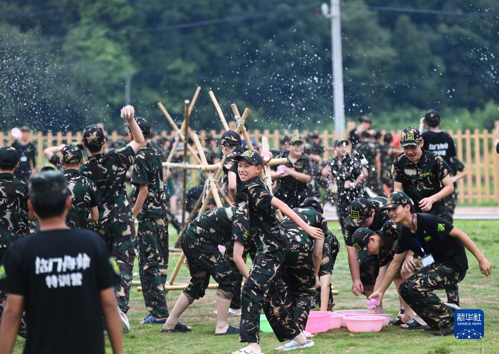 7月18日,在杭州富沈農業科技開發有限公司的研學基地內,參加暑期夏令營的孩子們在做游戲。由銀湖街道新鄉賢打造的杭州富沈農業科技開發有限公司是集產、學、研于一體的農業綜合基地,通過“農業+教育+旅游+N”的融合模式,形成了觀光農業、農副產品加工、城市廚房、親子體驗等特色文旅項目。