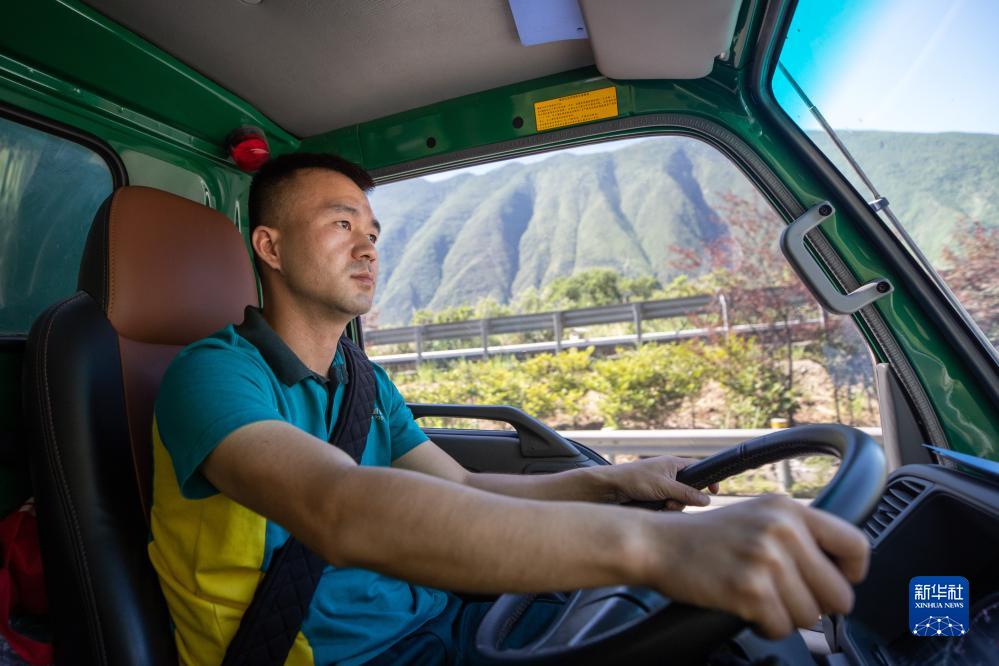 6月30日,在重慶市巫山縣,中國郵政重慶巫山縣分公司的工作人員駕駛載著巫山脆李的物流車行駛在高速公路上。