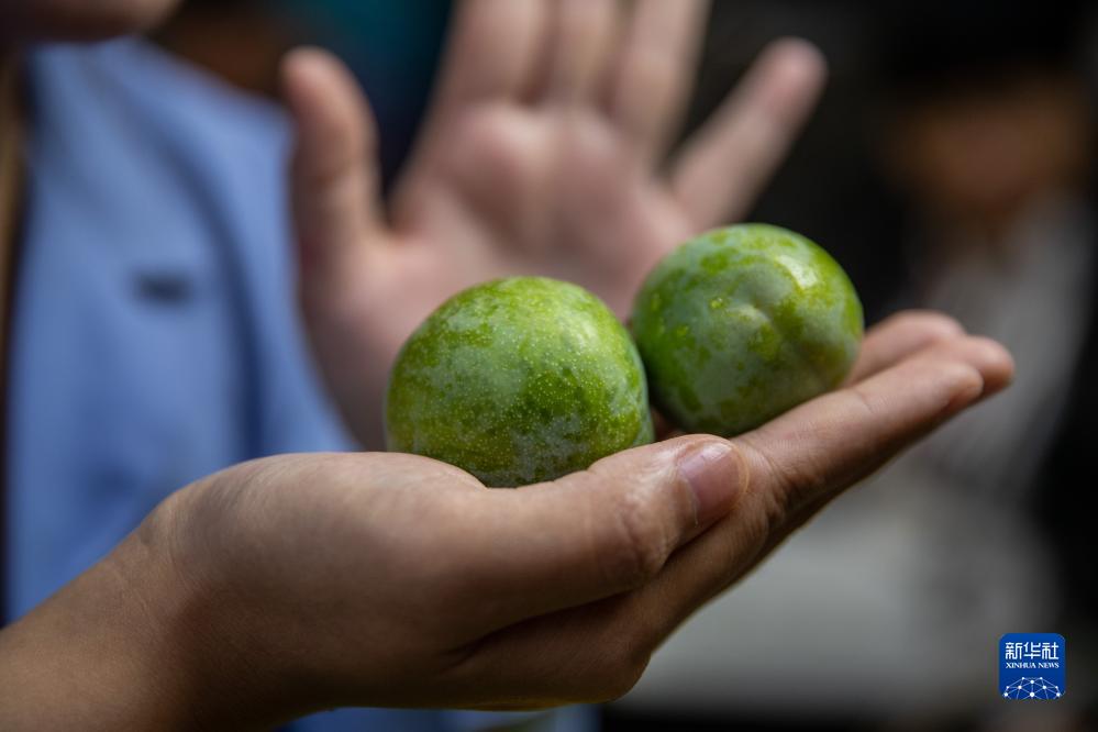 6月30日,在重慶市巫山縣曲尺鄉柑園村,主播劉嘉陵在網絡直播中展示并介紹巫山脆李。