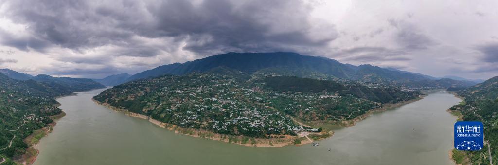 這是6月28日在重慶市巫山縣曲尺鄉拍攝的位于長江邊上的脆李種植基地(無人機拼接照片)。