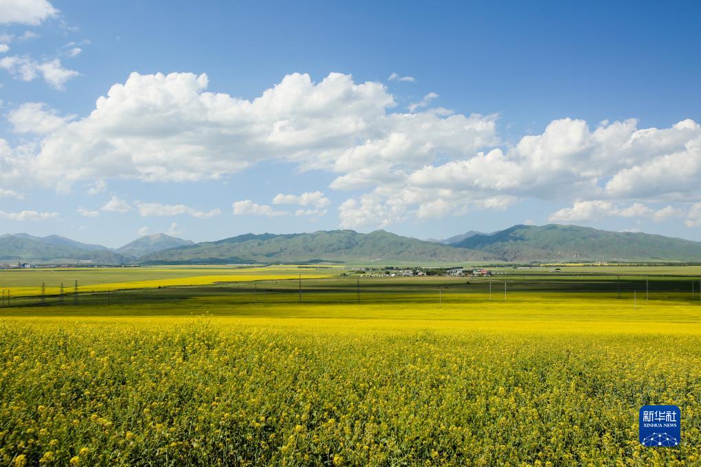這是7月19日在新疆伊犁哈薩克自治州昭蘇縣拍攝的一處油菜花田。