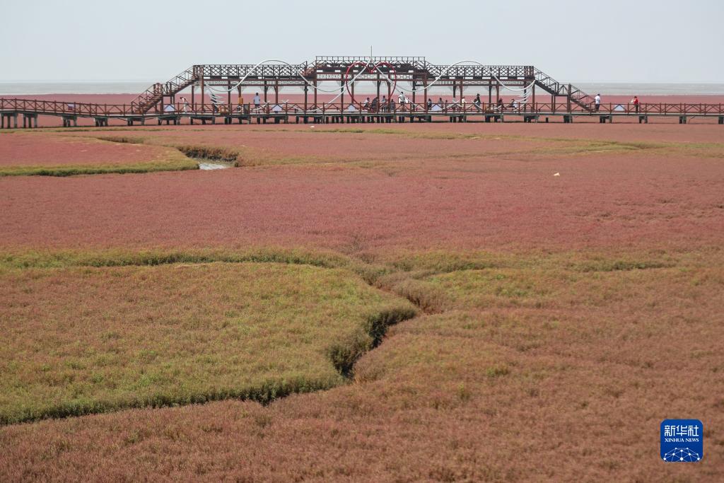 7月19日,游客在紅海灘國家風景廊道景區內游玩。