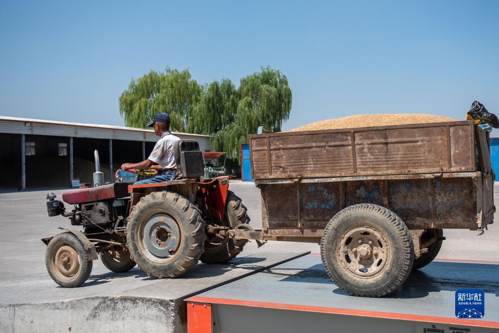 7月19日,在位于銀川市永寧縣望洪鎮的一處收購點,農民將滿載小麥的農用車開下稱重電子磅。