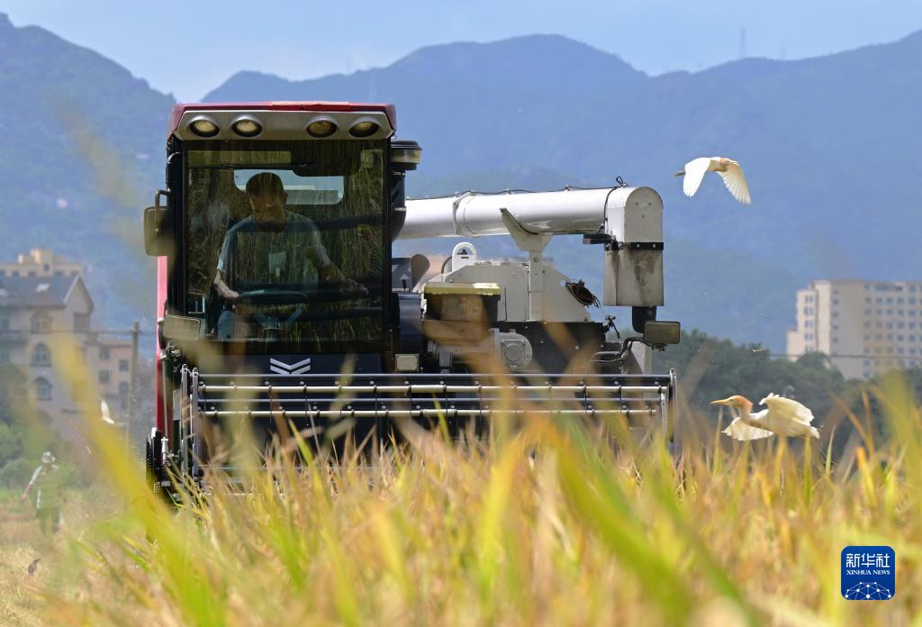 7月19日,在福建省福州市長樂區古槐鎮洋下村,農民駕駛農機收割早稻。