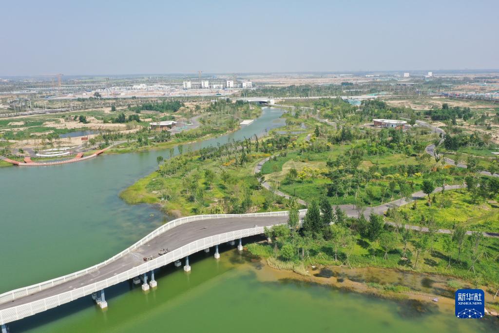 河北雄安新區啟動區中央綠谷及東部溪谷生態廊道一角(7月18日攝,無人機照片)。