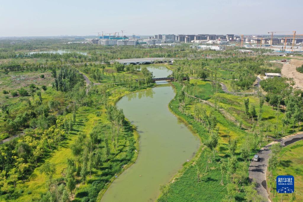 河北雄安新區啟動區中央綠谷及東部溪谷生態廊道一角(7月19日攝,無人機照片)。