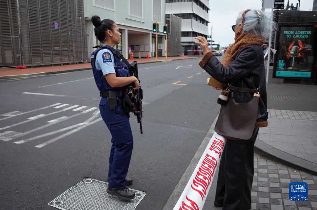 7月20日,在新西蘭奧克蘭,警方封鎖槍擊事件現場附近道路。