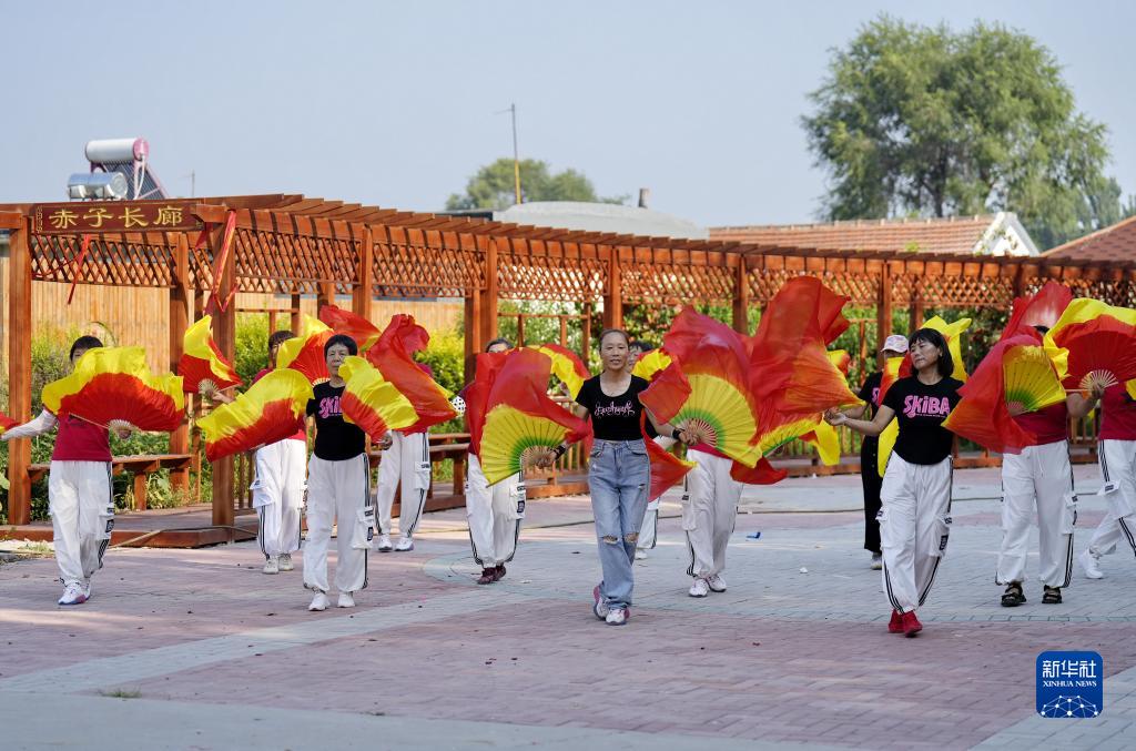 7月19日,村民們在河北省唐山市豐南區趙新莊村一處游園內跳舞。