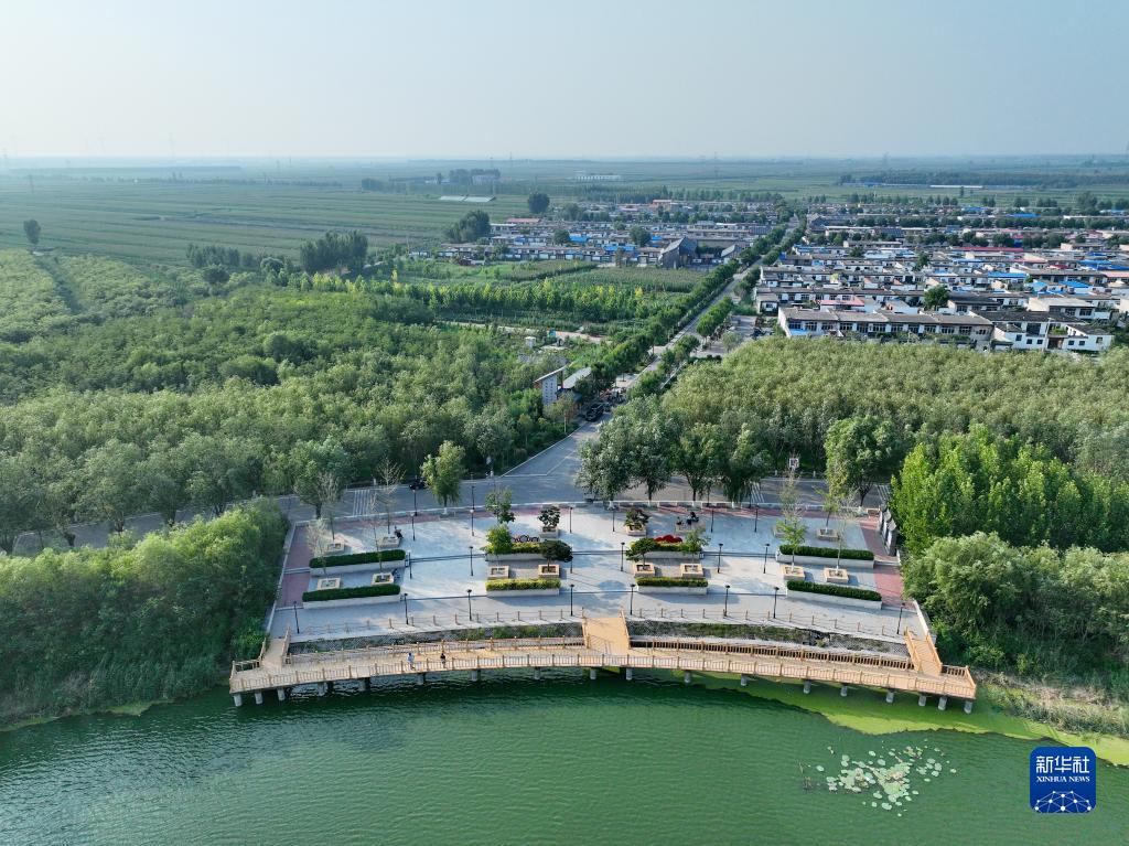 河北省唐山市豐南區王打刁村一處臨水游園(7月19日攝,無人機照片)。