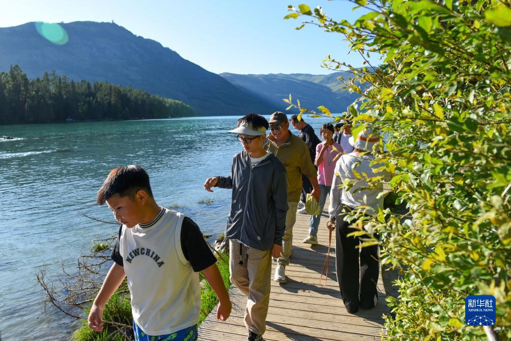 盛夏七月,位于新疆阿勒泰地區布爾津縣的喀納斯景區迎來旅游黃金期。游客乘船游湖、林間漫步、草原踏青,暢享盛夏清涼,感受秀美風光。